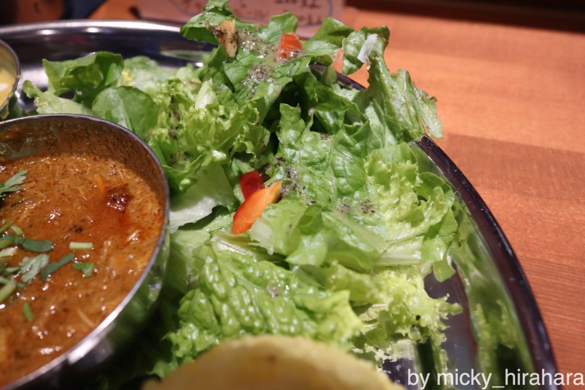 カレーの他にはサラダとライス・ナン(チーズクルチャに変更可能)が付いてきますのでボリュームは申し分ないと思いますし美味しいです。