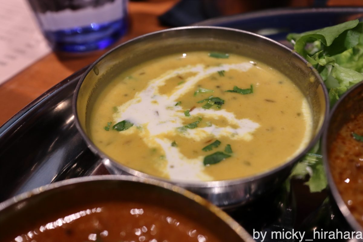 まず、菜の花ダルカレーは菜の花とダール(豆)を使ったもので、とても口当たりがマイルドで辛さはほとんどなく甘さも感じる一品でした。
