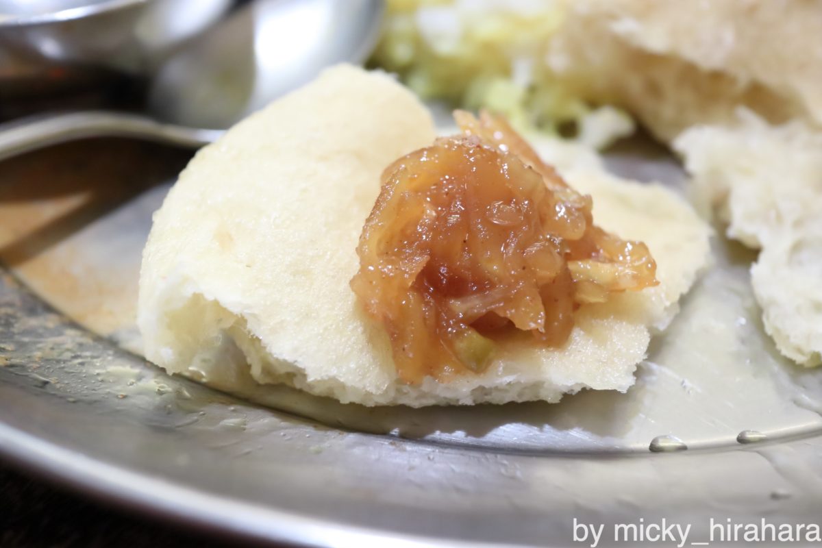 写真3枚目に飛びますが、チャツネというのはマンゴーのジャムのことでやや甘酸っぱい味わいとなっている。