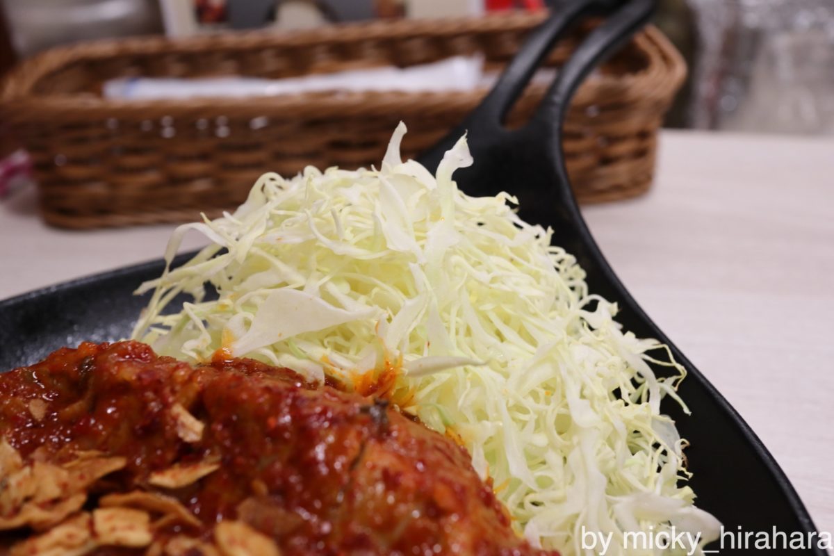 お肉の付け合わせとして、キャベツがたっぷり添えられております。