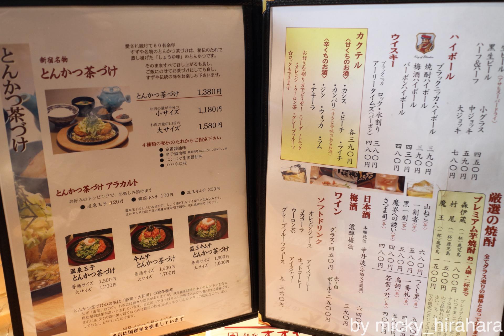 すずや秋葉原店のメニュー
