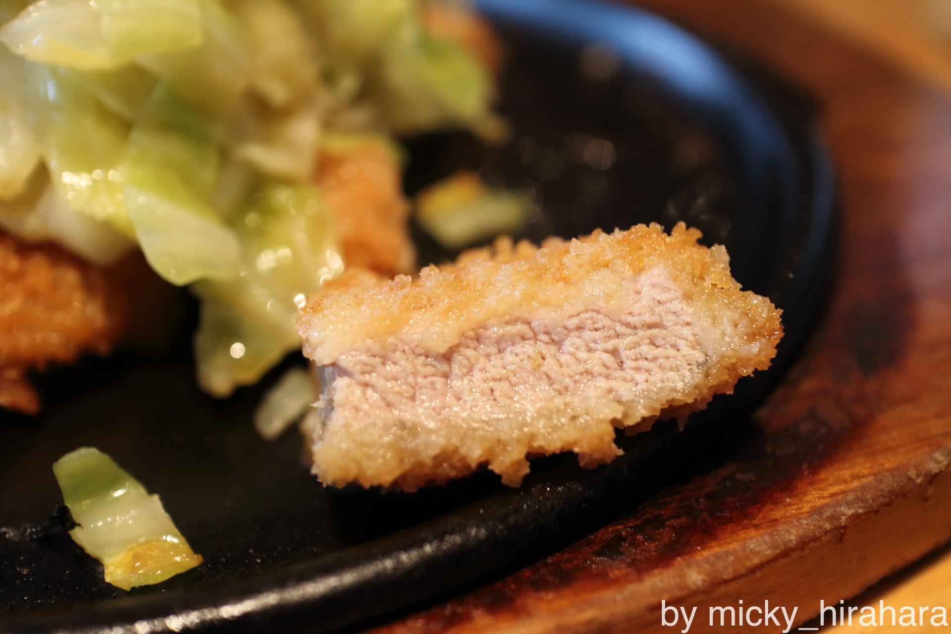 最初は普通にとんかつとして食べていきますが、茹でキャベツ+とんかつの相性はなかなかによくて美味しいのだ。